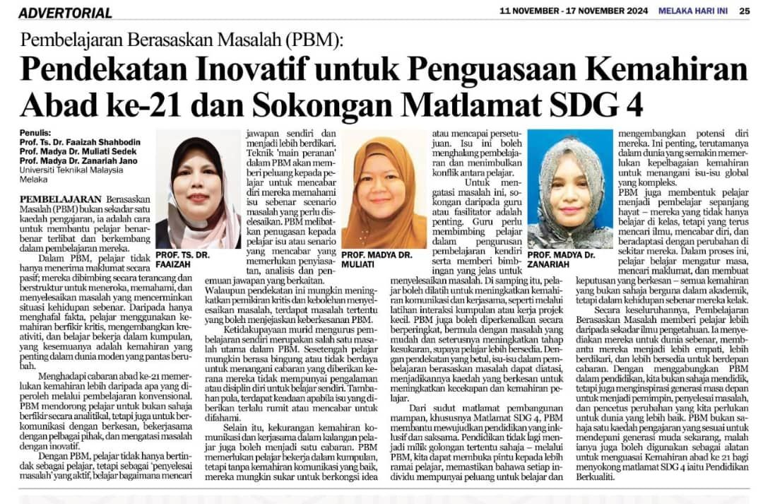 17 November 2024 | Melaka Hari Ini Pendekatan Inovatif untuk Penguasaan Kemahiran Abad ke-21 dan Sokongan Matlamat SDG 4