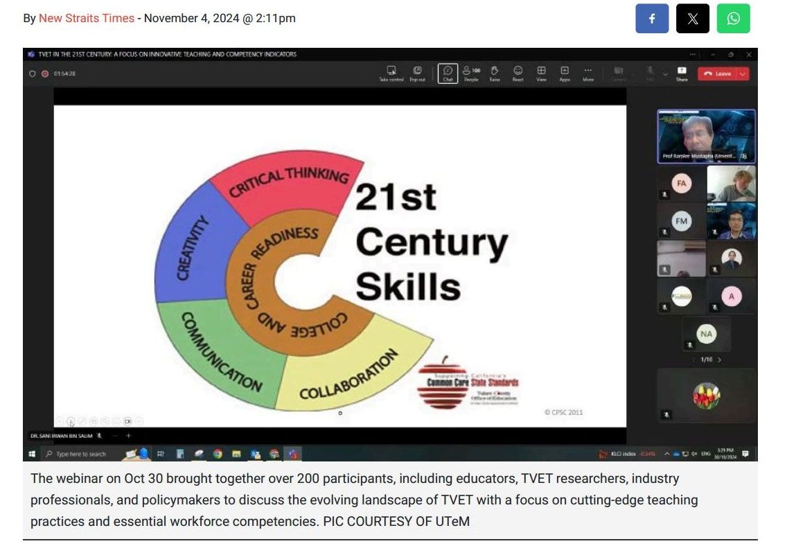 04 November 2024 | New Straits Times Experts discuss future of TVET in webinar hosted by UTeM and AKEPT Continue Reading